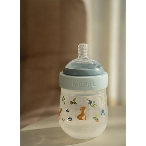 The Mepal Mio 165 ml baby bottle with the sweet Forest Friends print by Littel Dutch is designed for comfort and ease during feeding.
