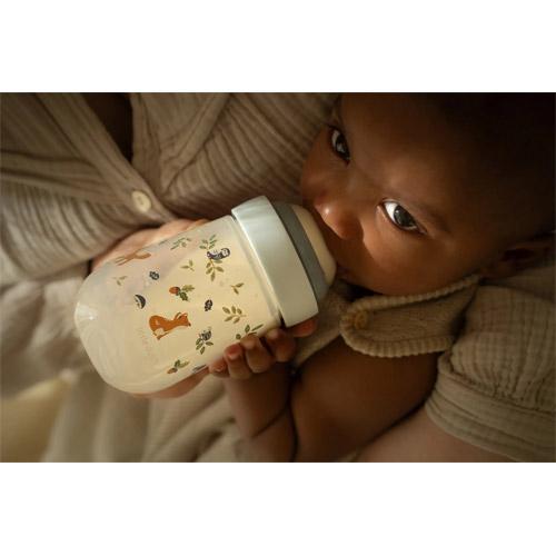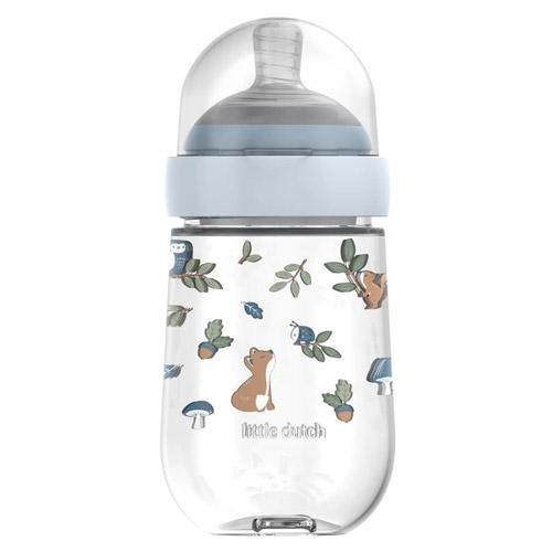The 240 ml Mepla Mio bottle, adorned with Little Dutch's charming Forest Friends design is designed for comfort and ease during feeding.