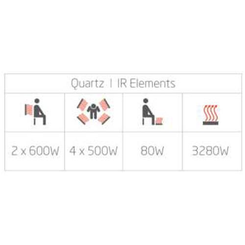- Chauffages à quartz dans la paroi avant, radiateurs à quartz de forme ergonomique pour l'arrière, chauffage par le sol.