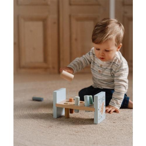 Utilisez le marteau pour enfoncer les 6 tiges colorées dans le banc à marteaux en bois et explorez la magie de Forest Friends.
