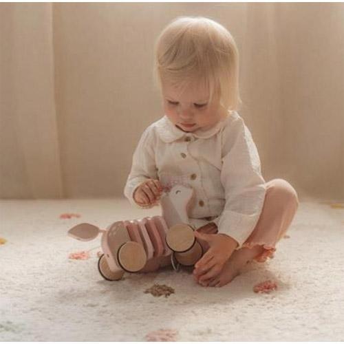 Fabriqué en bois robuste et décoré d'anneaux colorés, ce jouet à tirer offre non seulement un plaisir sans fin, mais favorise également la marche et le développement de la motricité.