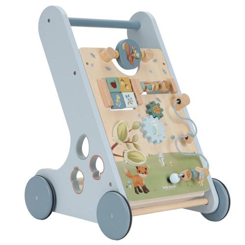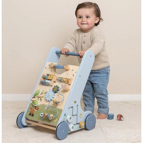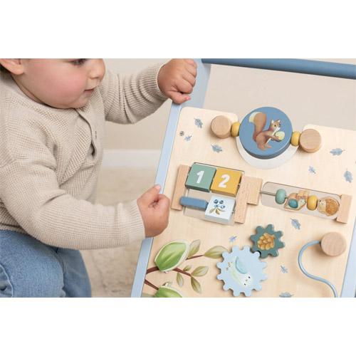 Ce trotteur d'activités en bois propose diverses activités stimulantes qui favorisent le développement de la motricité de votre enfant.