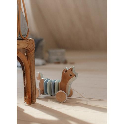 Fabriqué en bois robuste et décoré d'anneaux colorés, ce jouet à tirer offre non seulement un plaisir sans fin, mais favorise également la marche et le développement de la motricité.