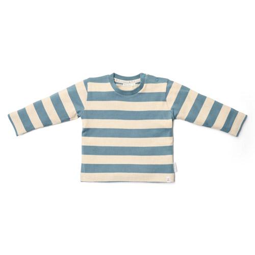 Offrez à votre petit aventurier un départ élégant avec ce t-shirt à manches longues rayé bleu et sable.