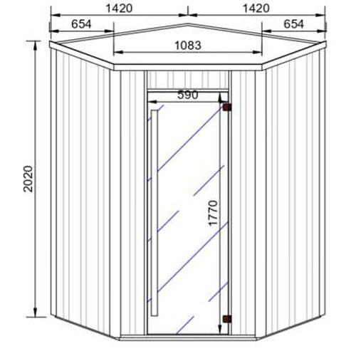 - Getinte veiligheidsglasdeur 1770 mm x 590 mm x 8 mm met bruine scharnieren en cederhouten handvat.