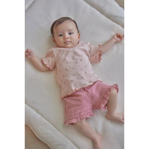 Deze lieve korte broek is gemaakt van mousseline stof en heeft schattige ruches aan de onderkant.