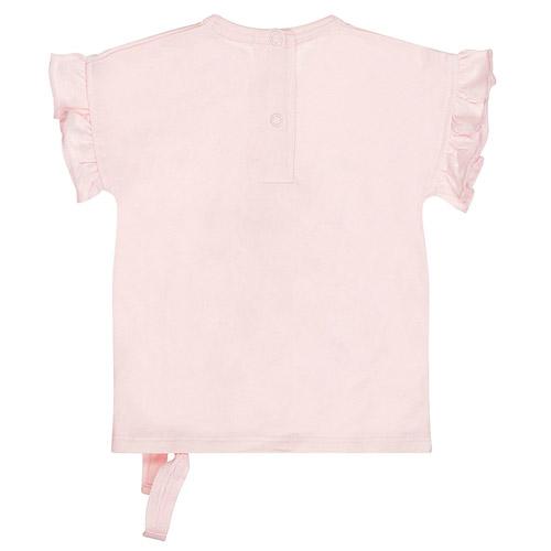 De mouwtje zijn voorzien van ruffles en onderaan zit een strikje, wat dit meisjes t-shirt een lieve en speelse look geeft.