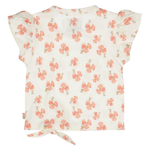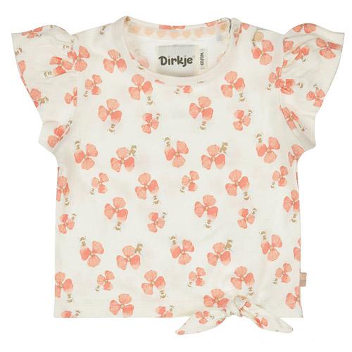 Zomers en speels, dit off-white Dirkje t-shirt met perikoranje bloemetjes is een toevoeging aan de garderobe.