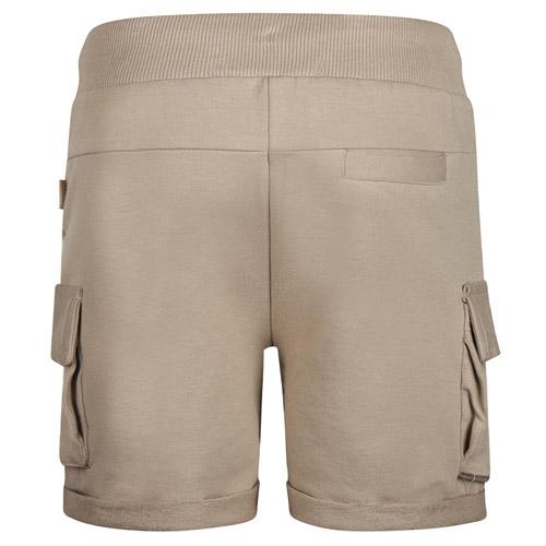De beige jogging korte broek is voorzien van stoere cargozakken en heeft omgeslagen pijpen voor een nonchalante, casual uitstraling, ideaal voor actieve avonturen of relaxte momenten in de zon.