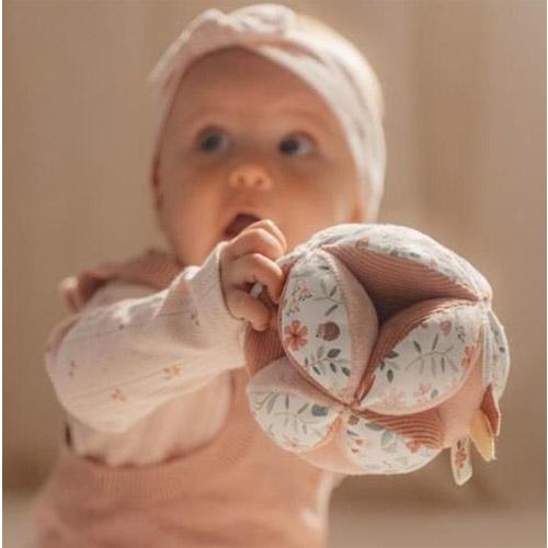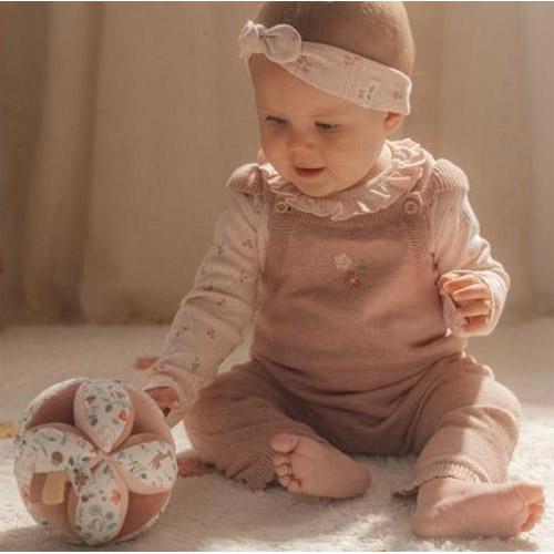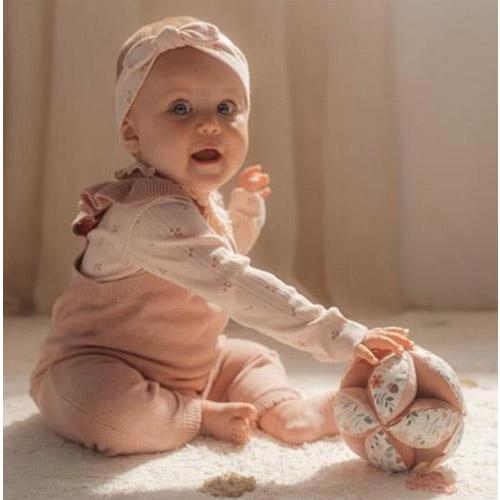 De bal is gemakkelijk op te pakken voor kleine handjes en het vrolijke geluid van het rammelende belletje beloont je baby's inspanning.