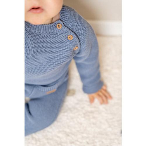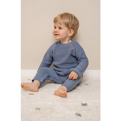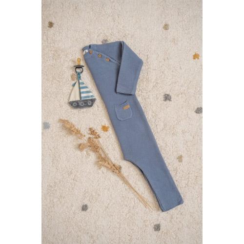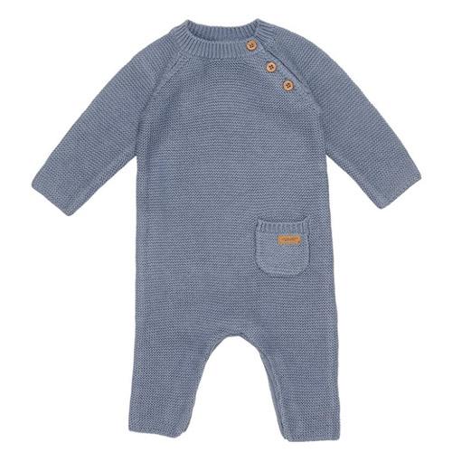 This lovely romper has a beautiful blue colour and features wood-look buttons and a small pocket.