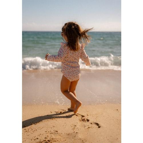 The charming ruffles along the waist dance along with every move your little one makes while playing in the water.