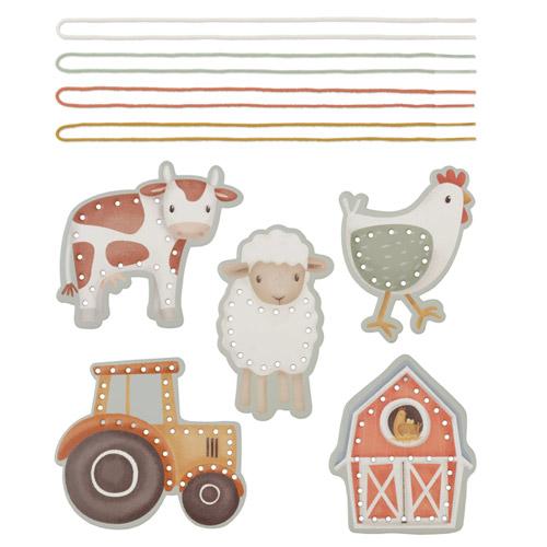 Cet ensemble de perles à enfiler est livré avec une dentelle et des perles en bois présentant les belles illustrations de la collection Little Farm.