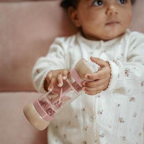 Le hochet de pluie est conçu pour les petites mains et tient confortablement dans la main.