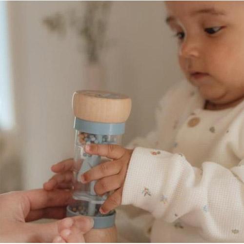 Le hochet de pluie est conçu pour les petites mains et tient confortablement dans la main.