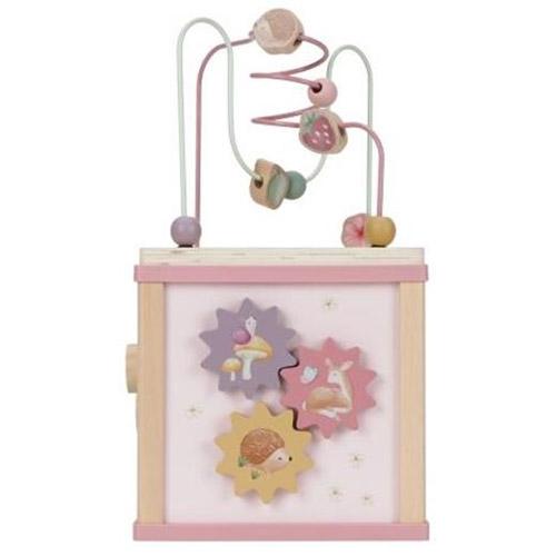 Chaque côté présente des éléments enchanteurs du thème du jardin des fées et propose des activités éducatives amusantes, telles qu'un trieur de formes, des engrenages rotatifs, des puzzles et une spirale de perles amusante sur le dessus.