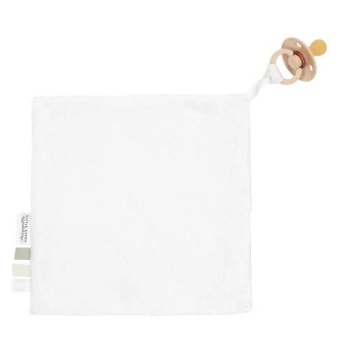 Vous pouvez attacher une tétine ou un anneau de dentition à la boucle du doudou.