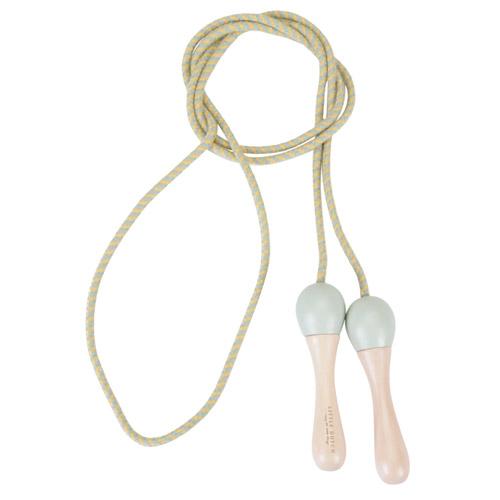 Les couleurs douces ocre et vert se reflètent à la fois dans la corde et dans les poignées en bois.