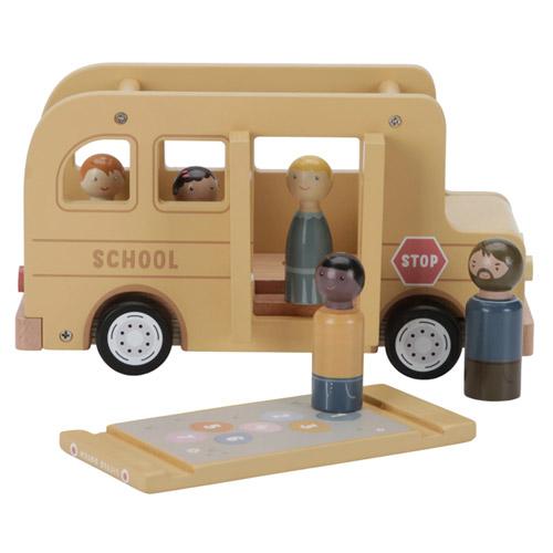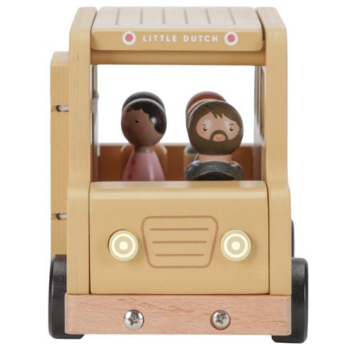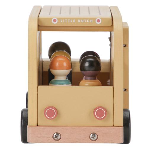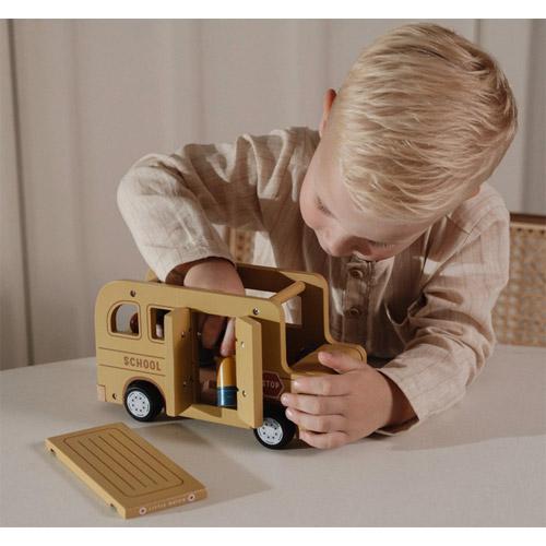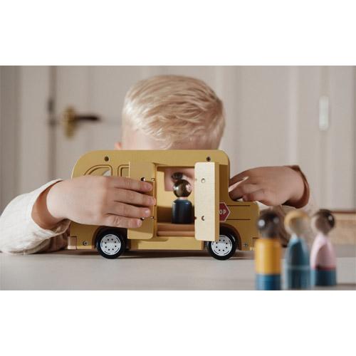 La porte et le toit du bus scolaire en bois peuvent être ouverts et les figurines correspondent également à la maison de poupée et à d'autres ensembles de jeu tels que l'avion et la voiture avec caravane.