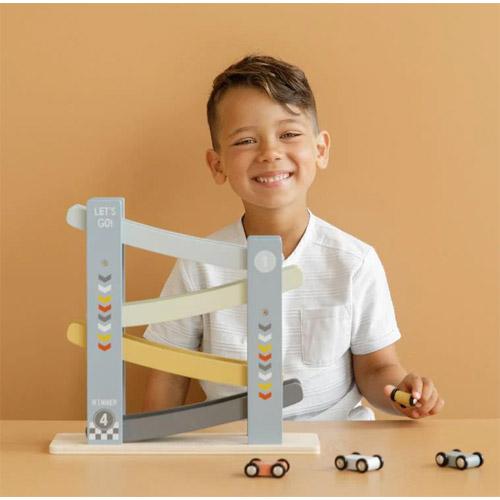 Placez les voitures une par une sur la piste de course, laissez-les partir et elles dévaleront la piste. Les enfants adorent ça !