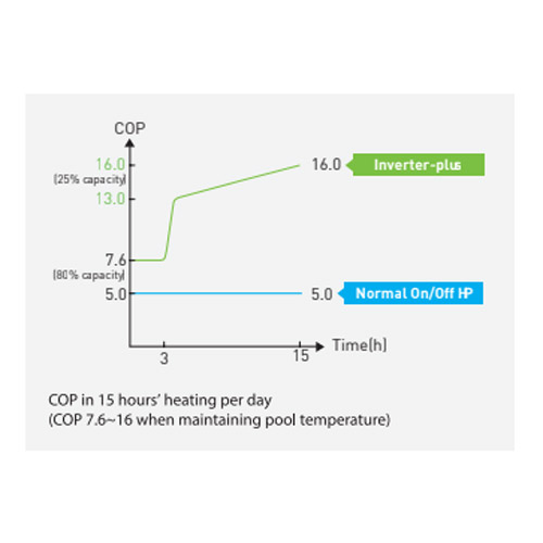 Au début de la saison, le système Full- Inverter fonctionne à 100% pour chauffer la piscine durant les premiers jours de beau temps.