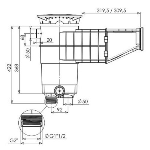 Connexion : 2"M / 1"1/ 2F / 50 mm.