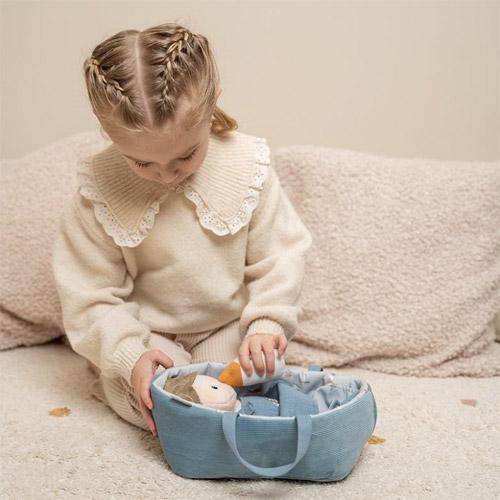 Cette jolie poupée en peluche de Little Dutch veut être câlinée et soignée.