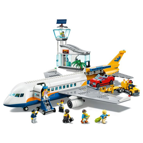 La créativité des enfants prend son envol avec le set de construction Lego City l'avion de passagers, qui inclut un immense avion doté de sièges pour les figurines du pilote et des passagers, dont la chanteuse Poppy Star de la série télévisée Lego City Adventures.