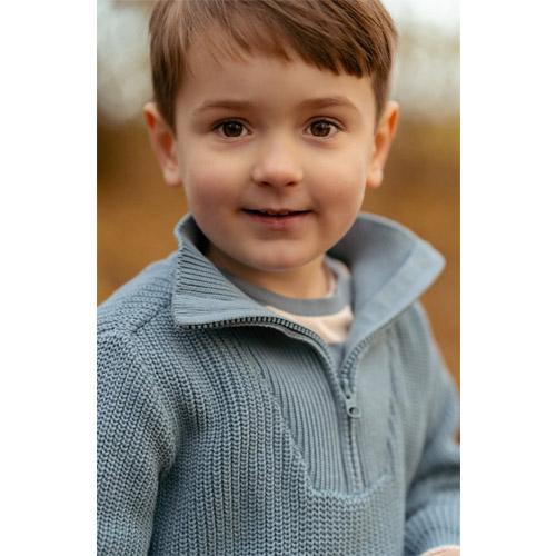 Préparez votre tout-petit à l'aventure avec ce pull en maille délicieusement chaud, couleur Stone Blue.