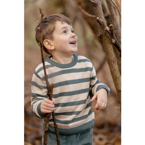Pull Little Dutch Forest Friends tricoté rayures vertes