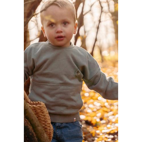 Pour les petits qui ont toujours quelque chose avec eux (ne serait-ce qu'une collection de cailloux), ce pull Forest Green est l'indispensable de l'hiver !