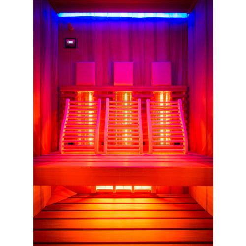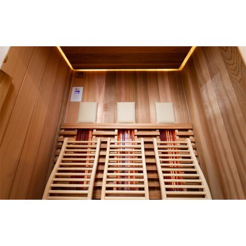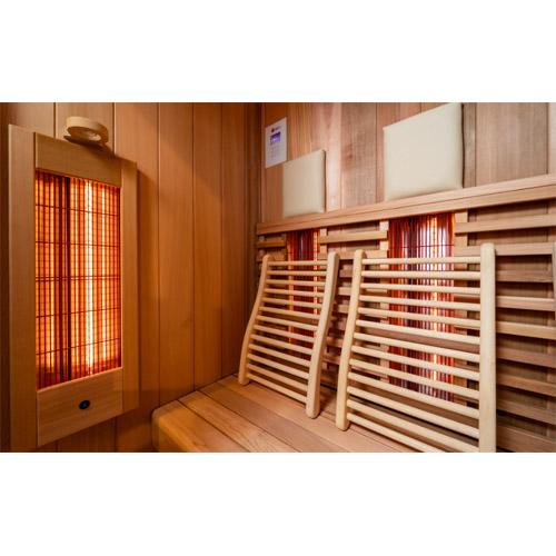 - Bank, ergonomische rugleuningen en vloer in Canadees red ceder hout, kunstlederen hoofdsteunen.
