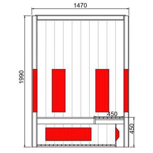 - Getinte veiligheidsglasfront met deur 1770 x 590 x 8 mm inclusief bruine scharnieren / red ceder handvat en 2 zijruiten in 8 mm gehard glas.