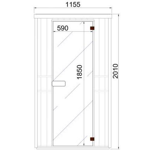 - Getinte veiligheidsglasdeur 1850 mm x 590 mm x 8 mm met bruine scharnieren en cederhouten handvat.