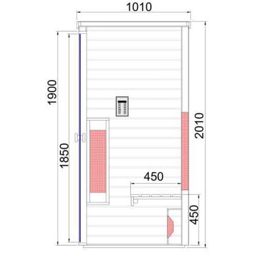 - Duo stralers in de voor- en achterwand, magnesium straler voor de benen en vloerverwarming.