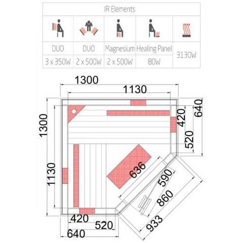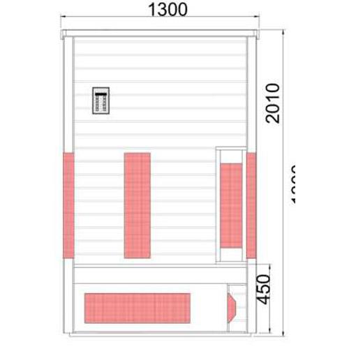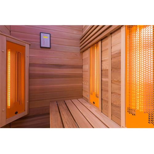 - Duo stralers in de voor- en achterwand, magnesium straler voor de benen en vloerverwarming.
