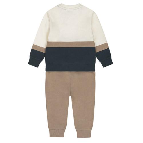 Met de Dirkje set sweater en joggingbroek in donkerblauw en bruin is jouw mini klaar voor een knusse dag.