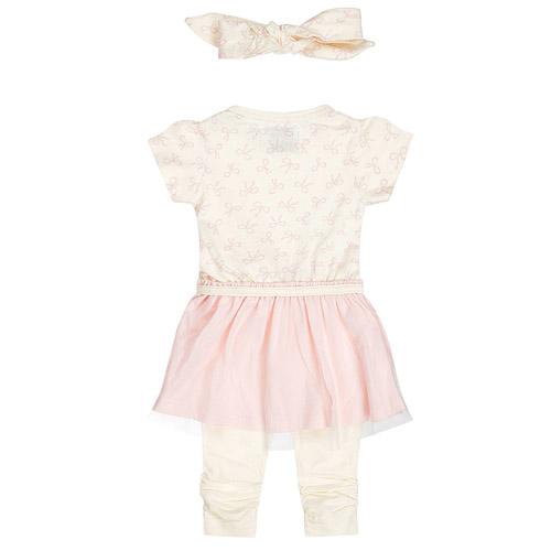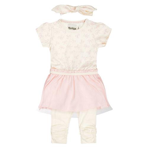 Pakje Dirkje 3-delig, jurk, broek en strik wit/roze