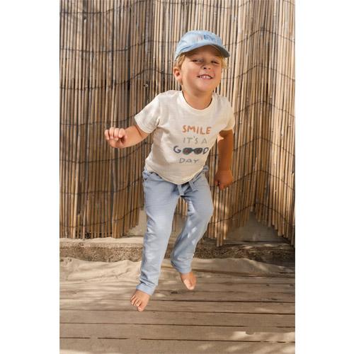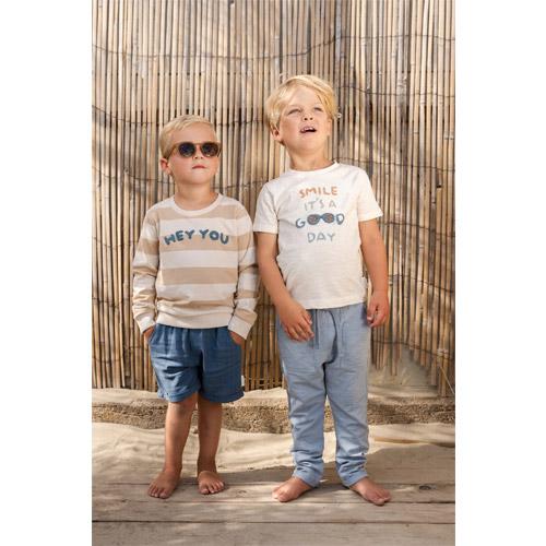 Deze zachte blauwe broek is perfect voor kleine avonturiers.