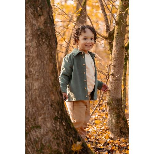 Dit zachte, warme corduroy overhemd in de kleur Night Green is de perfecte keuze voor elke kleine gentleman met een avontuurlijke kant.