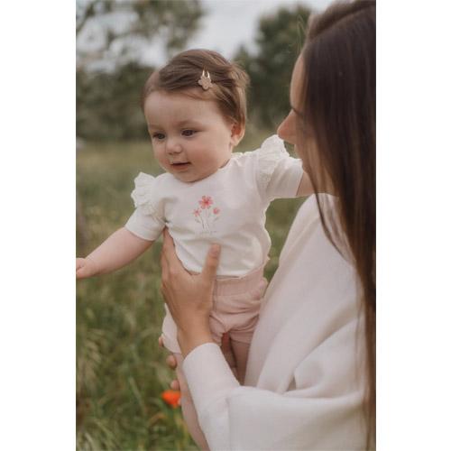 De lieve ruches op de schouders en het fijne biologische katoen zorgen voor comfort en bewegingsvrijheid.