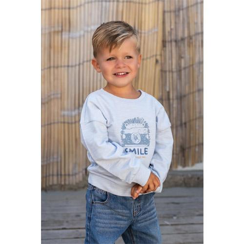 Deze zachte sweater in een warme blauw tint is perfect voor kleine avonturiers.