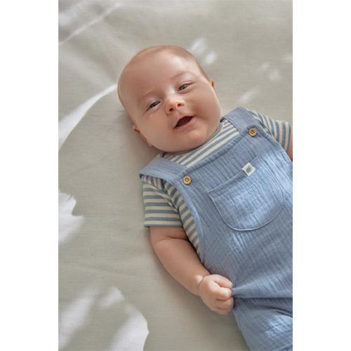 Gemaakt van luchtig biologisch katoen, met verstelbare hout-look knoopjes en handige drukknoopjes bij het kruis.