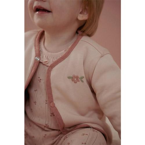 Het zachte jasje heeft een prachtige Fairy Garden-print aan de ene kant en een effen Pink Blush kleur aan de andere kant.