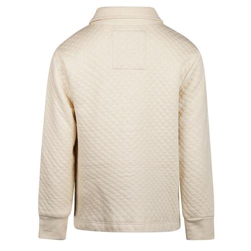 De buitenvest is gemaakt van een comfortabele stofmix van 75% katoen en 25% polyester en heeft een licht gewatteerde, doorstikte structuur die warmte biedt zonder te zwaar aan te voelen.