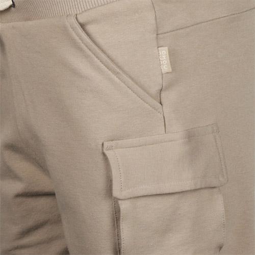 De beige jogging korte broek is voorzien van stoere cargozakken en heeft omgeslagen pijpen voor een nonchalante, casual uitstraling, ideaal voor actieve avonturen of relaxte momenten in de zon.