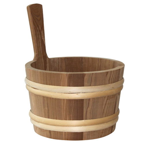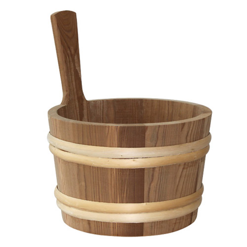 Hoogwaardige emmer van warmtebehandel hout met een hengsel.