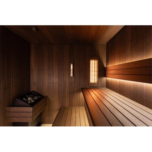 - Matelas antidérapant, appui-tête, thermomètre, kit sauna.