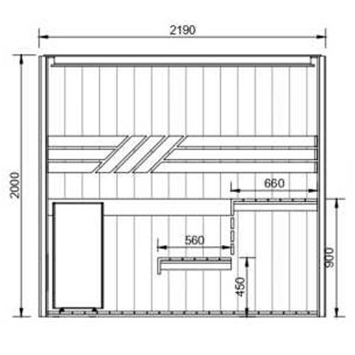 -Banken, rugsteunen, oven beschermingsroosters en loopvloer in ceder.