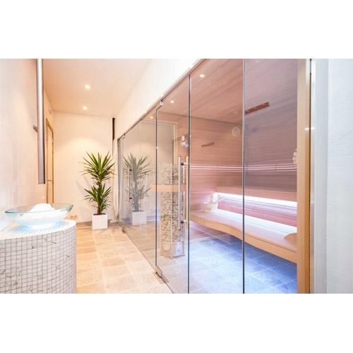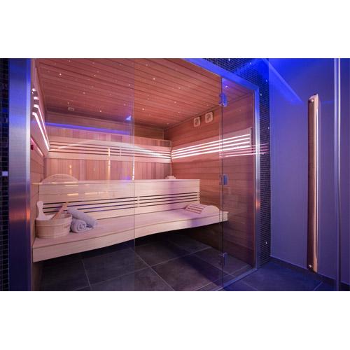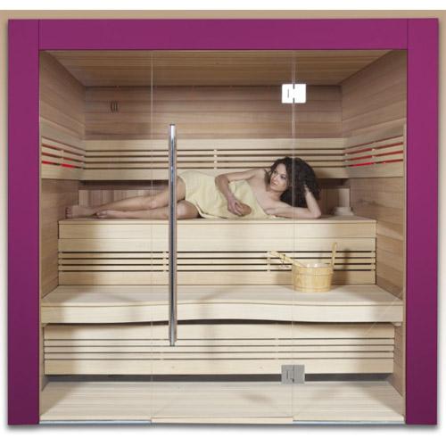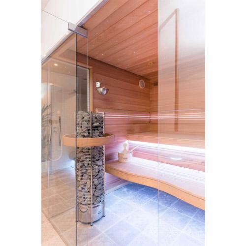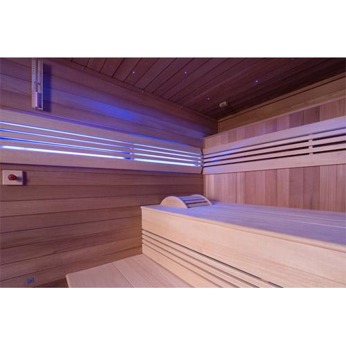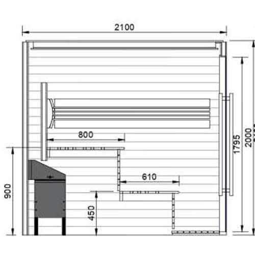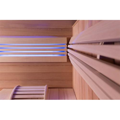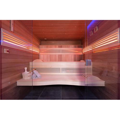-Banken, rugsteunen, oven bescherming en loopvloer in ayous thermo hout.